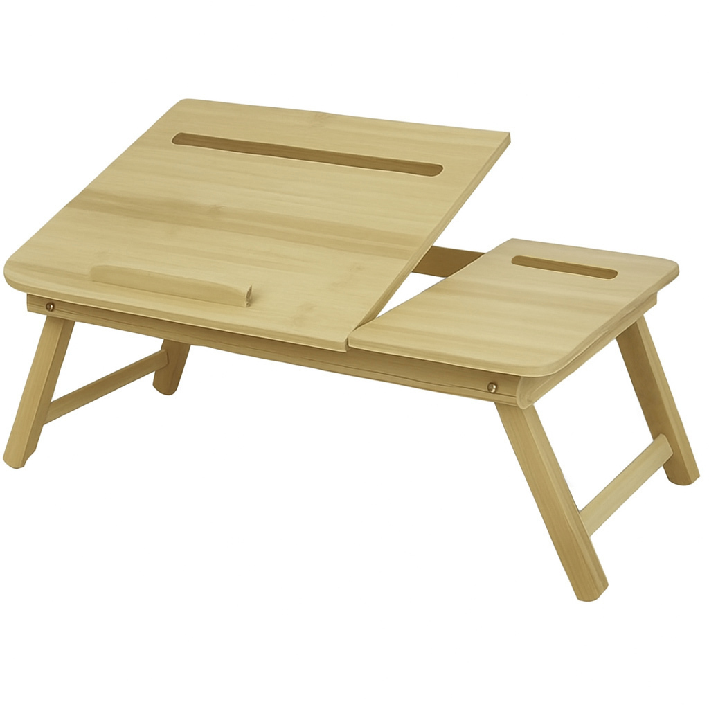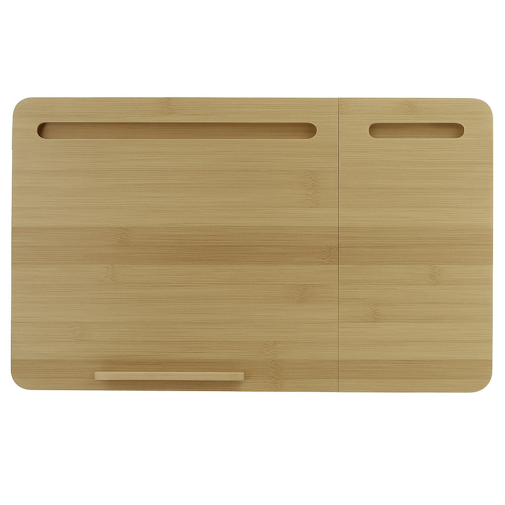 Складной и регулируемый стол из бамбука. Универсальный стол позволяет регулировать не только высоту, но и угол наклона для чтения книг, работы на ноутбуке, просмотра фильмов на планшете или приема пищи. На фиксируемом боковом столике можно разместить чашку, компьютерную мышь и/или ноутбук. Идеально подходит для использования на диване, в саду, в постели, на балконе или в парке. Бамбук используется из устойчивых, экологически и социально ответственных источников. Складной стол в самом высоком положении имеет размеры 68,5 x 34 x 48 см. Поставляется с инструкцией по эксплуатации и упакован в подарочную коробку из переработанного картона размером 58 x 36 x 5,5 см.