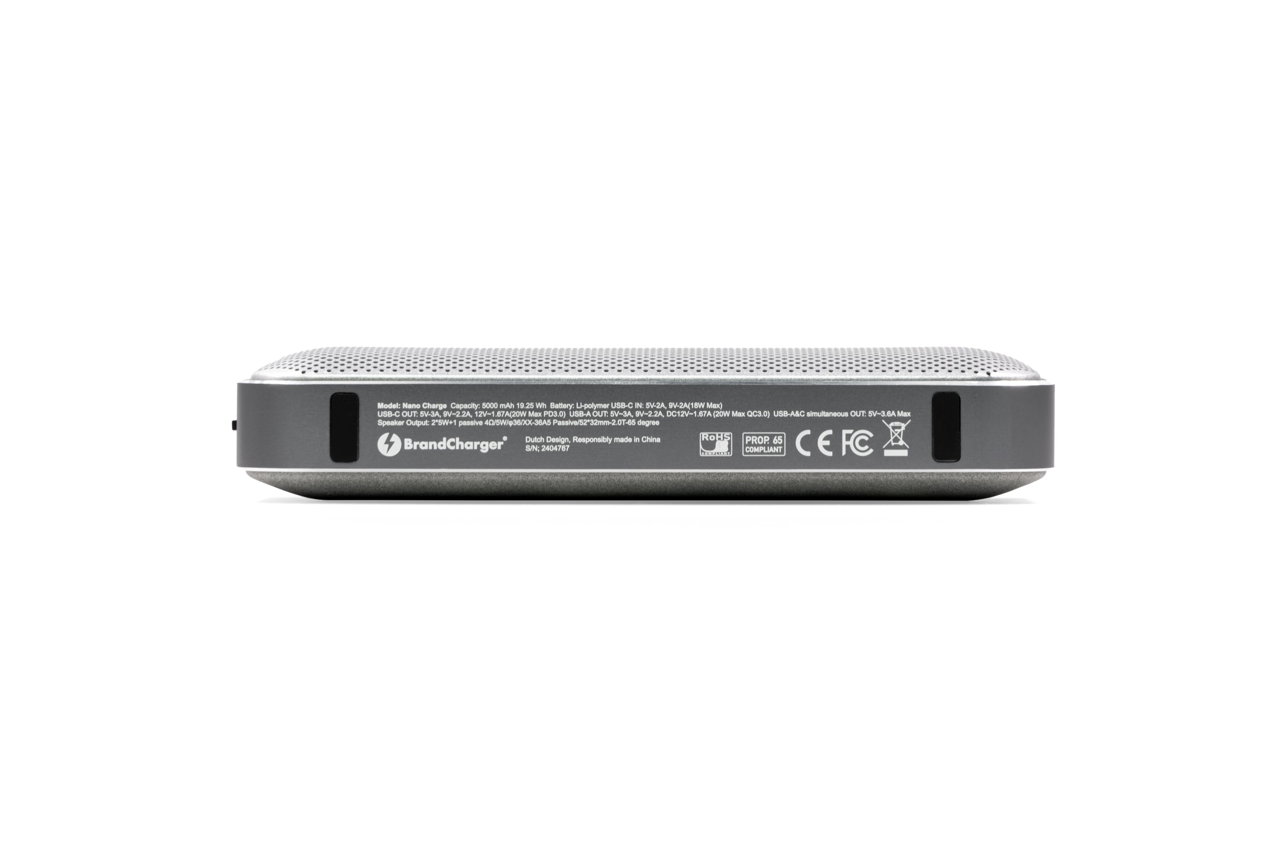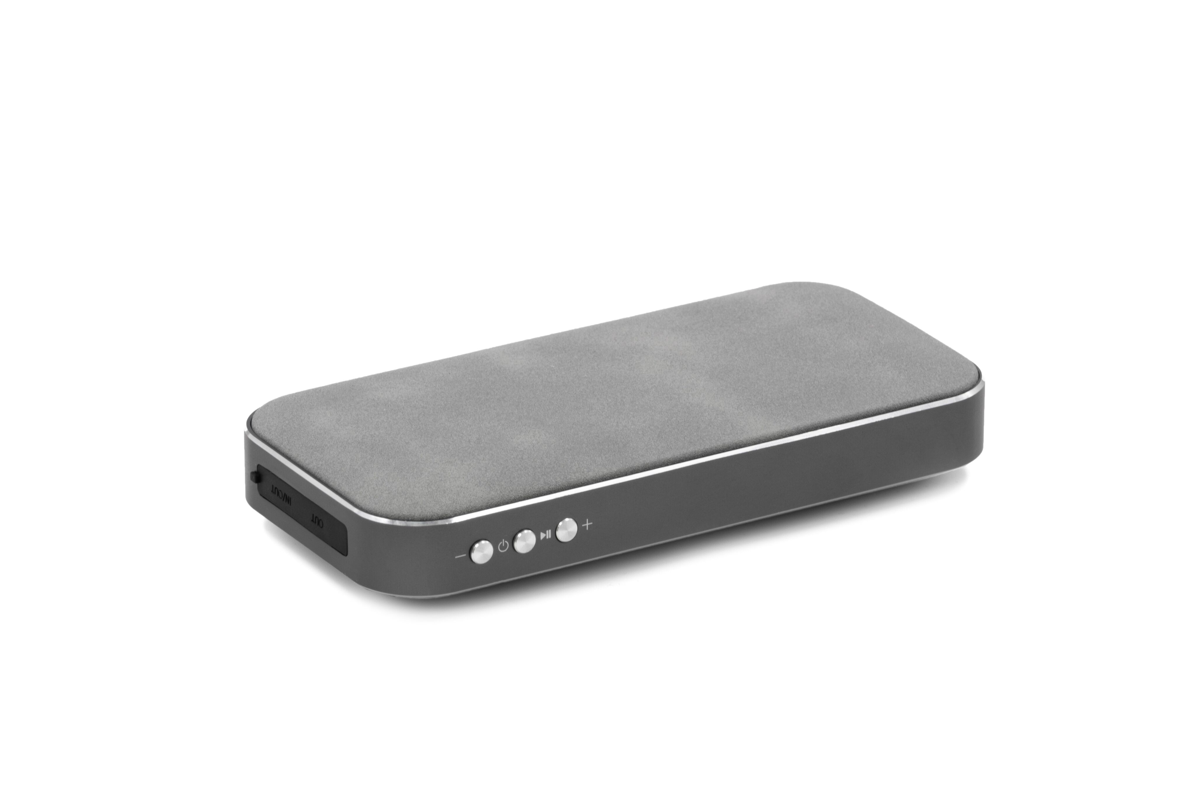 компактная беспроводная колонка-пауэрбанк со сверхмощным объемным звуком 10 Вт и аккумулятором 5000 мА·ч. Поддерживает быструю зарядку Type-C мощностью до 20 Вт (PD3.0/QC3.0) и Bluetooth 5.0 с радиусом до 10 м. Воспроизведение до 8 ч, функция громкой связи и TWS-режим (True Wireless Stereo). Корпус из матового алюминия со вставками из веганской замши.