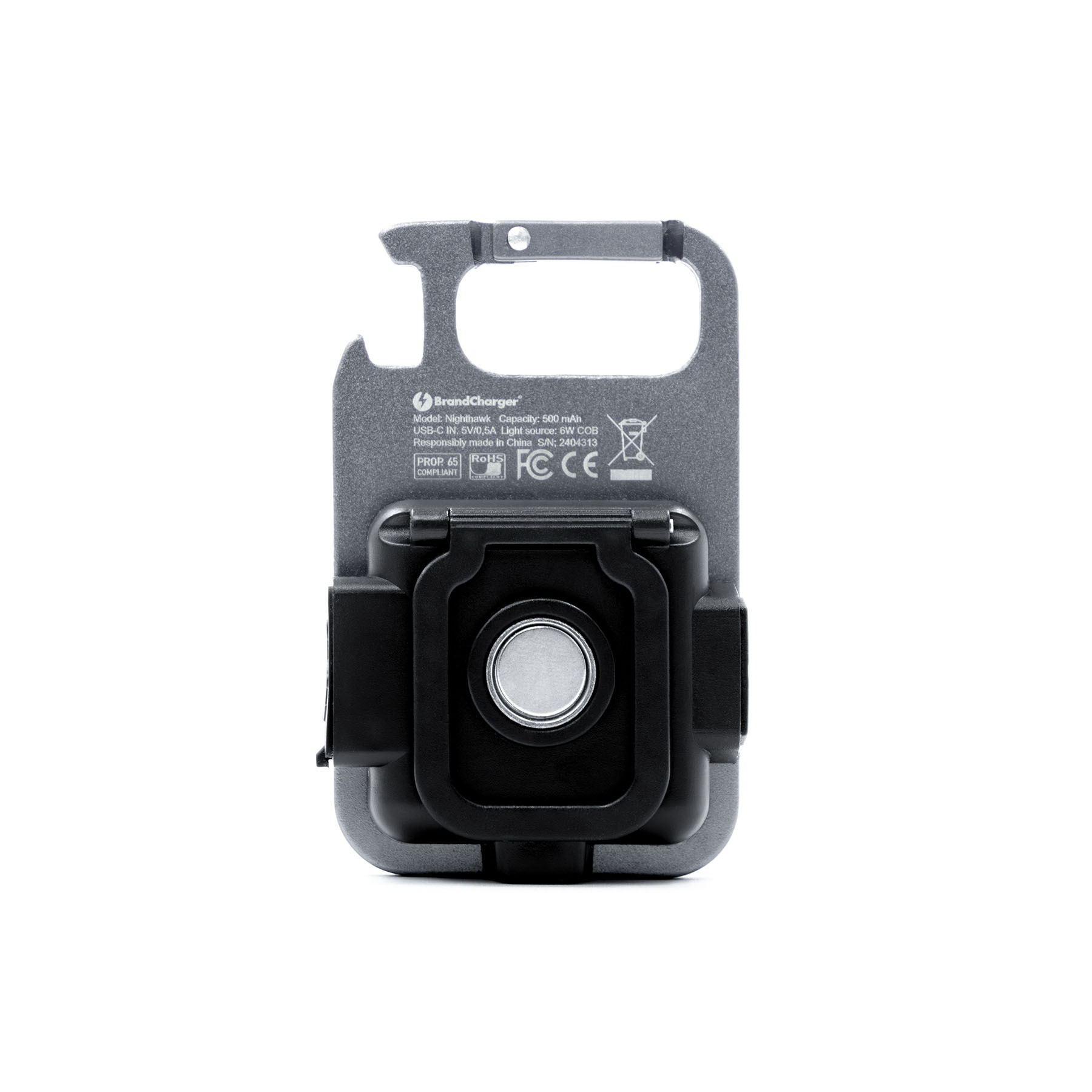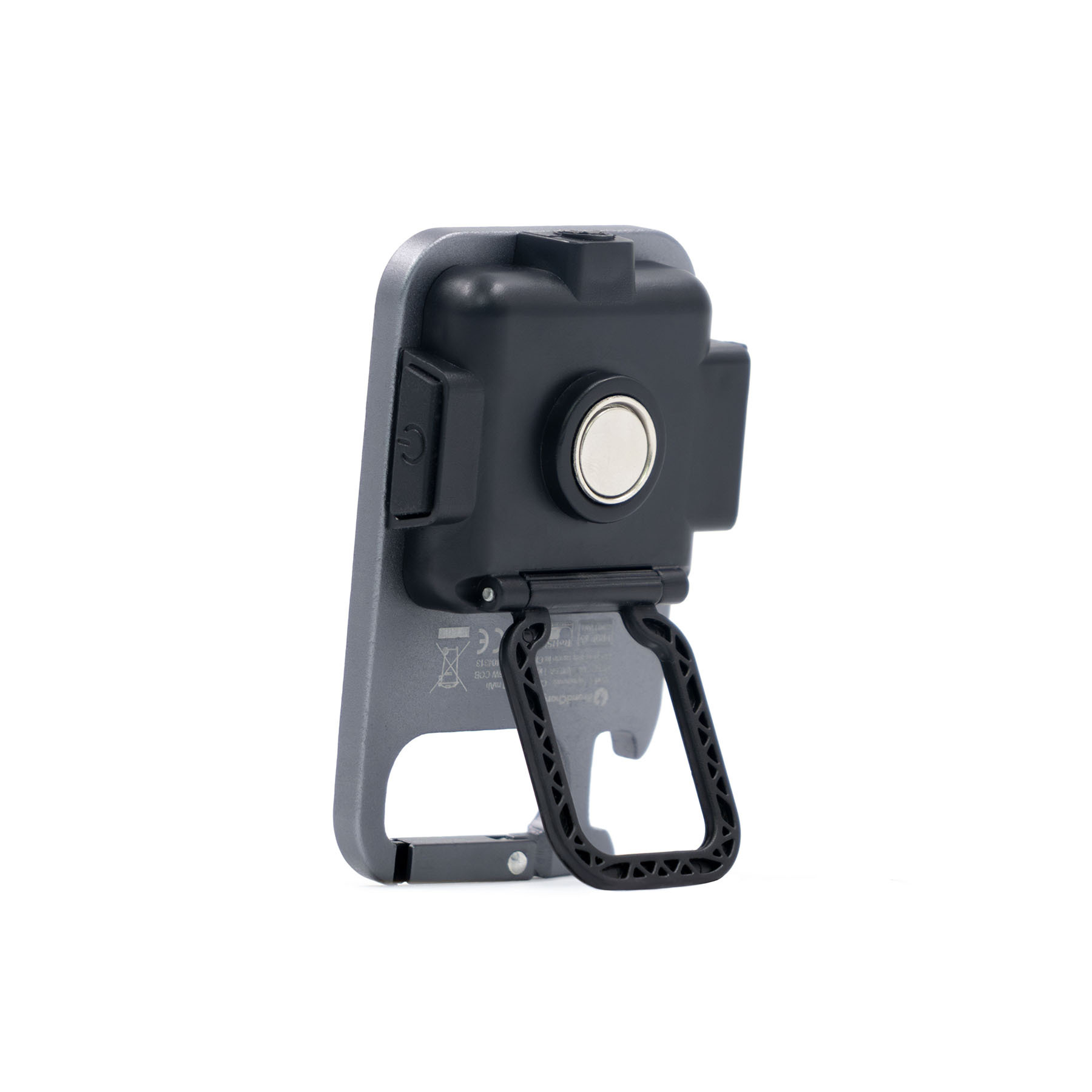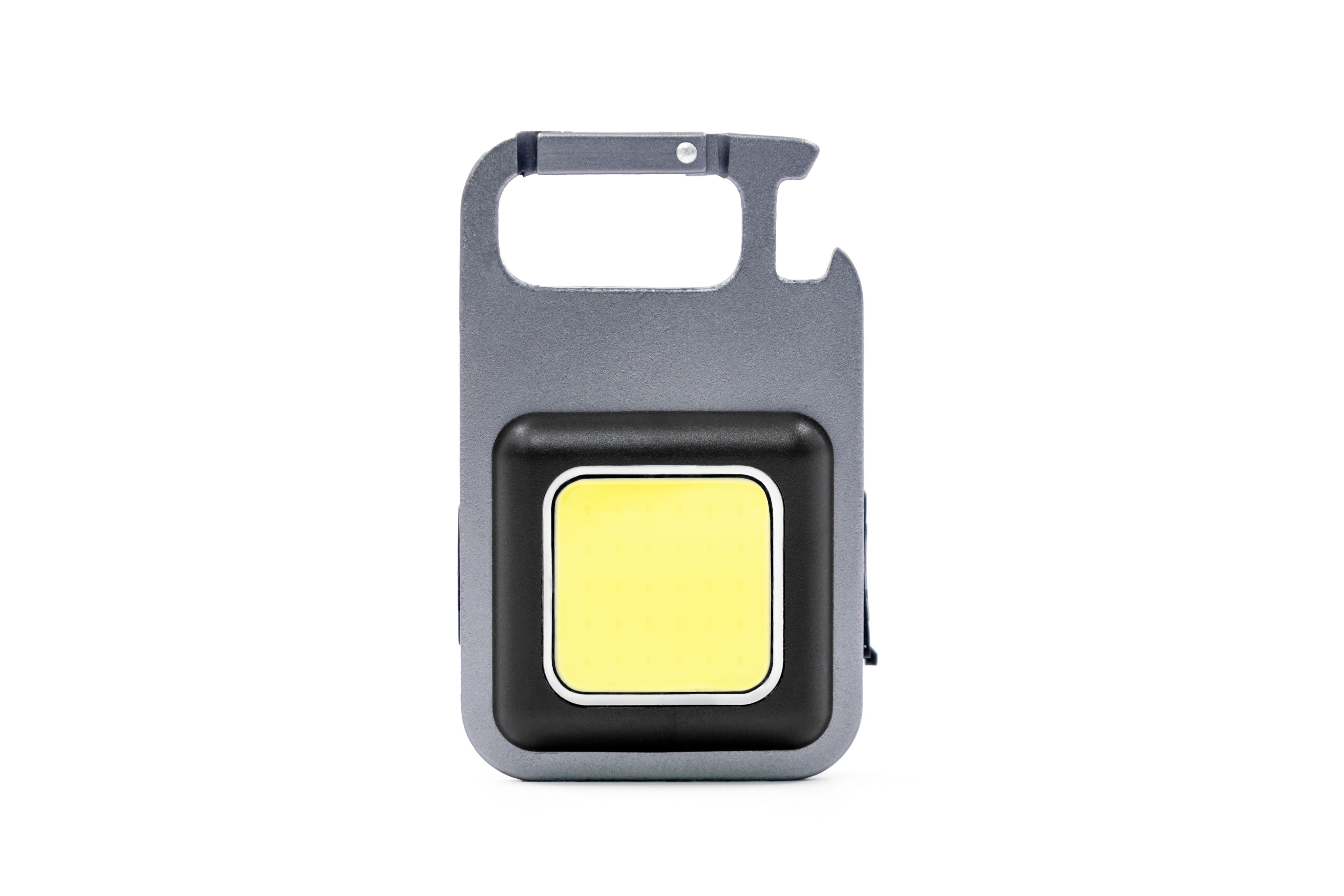 Компактный алюминиевый фонарь-мультитул с COB-светодиодом. Оснащён магнитным основанием для крепления к металлическим поверхностям, встроенной подставкой, карабином, открывалкой для бутылок и креплением под штатив. Максимальная яркость 500 люмен, аккумулятор 500 мА·ч, до 4 часов работы в стандартном режиме. Зарядка через USB-C, четыре режима освещения: экономичный, стандартный, мощный и строб (мигающий). Имеет влагозащиту уровня IPX4, устойчив к дождю и брызгам.