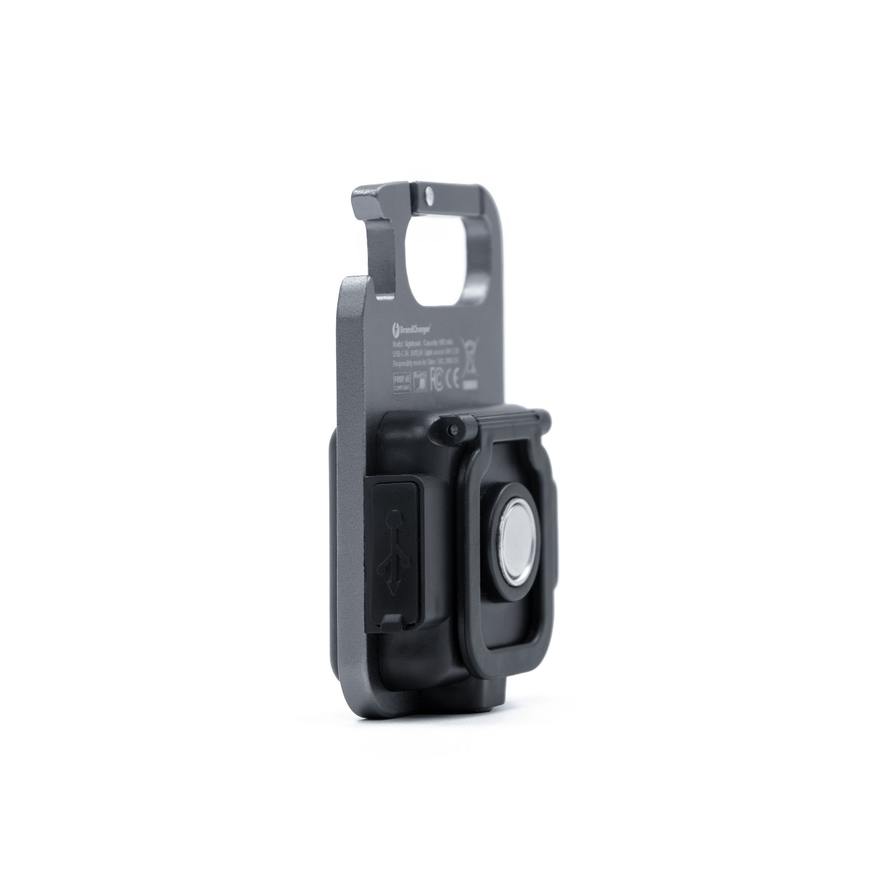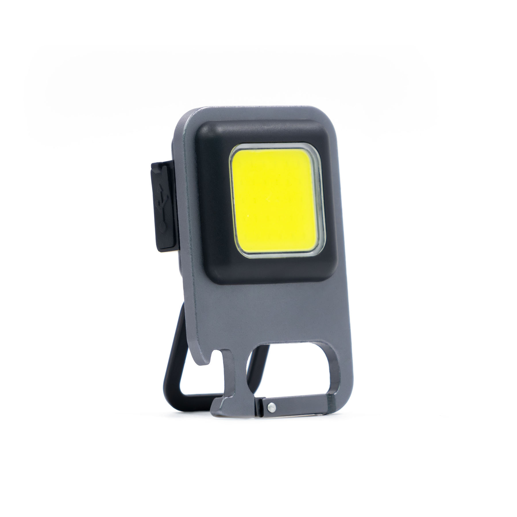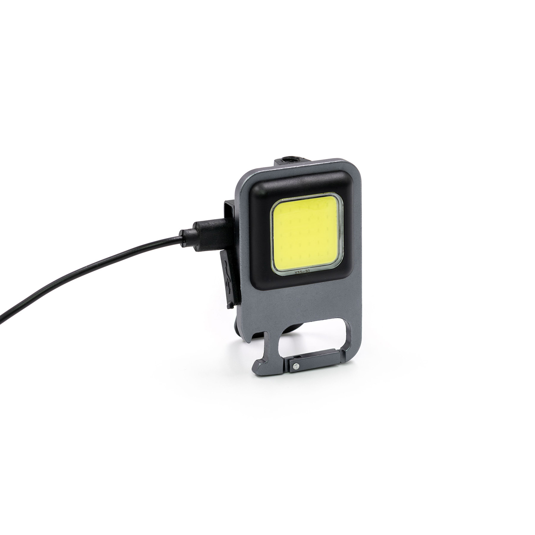 Компактный алюминиевый фонарь-мультитул с COB-светодиодом. Оснащён магнитным основанием для крепления к металлическим поверхностям, встроенной подставкой, карабином, открывалкой для бутылок и креплением под штатив. Максимальная яркость 500 люмен, аккумулятор 500 мА·ч, до 4 часов работы в стандартном режиме. Зарядка через USB-C, четыре режима освещения: экономичный, стандартный, мощный и строб (мигающий). Имеет влагозащиту уровня IPX4, устойчив к дождю и брызгам.