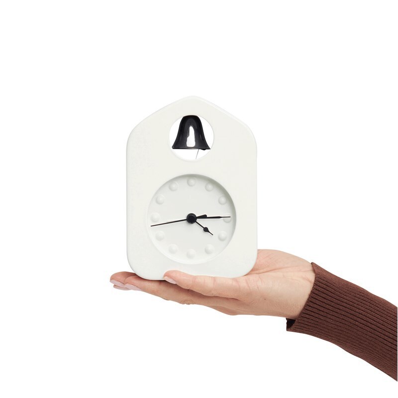 Настольные часы BELL в виде колокольни с аналоговым дисплеем времени, белый циферблат и черные стрелки часов, функция будильника с металлическим колоколом