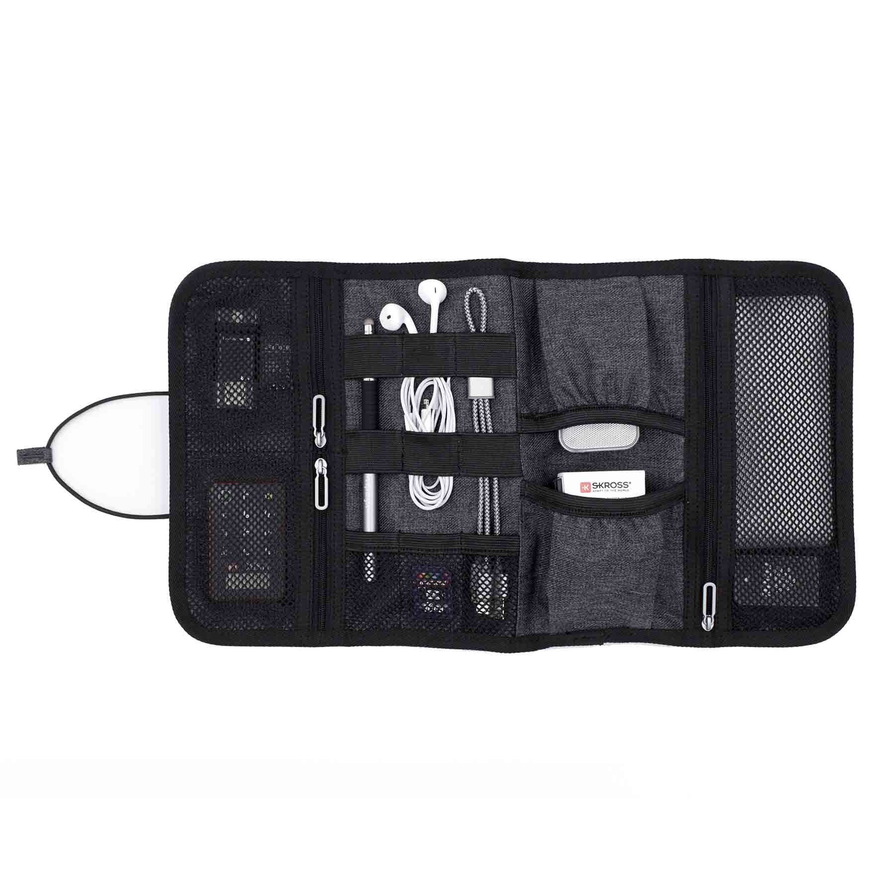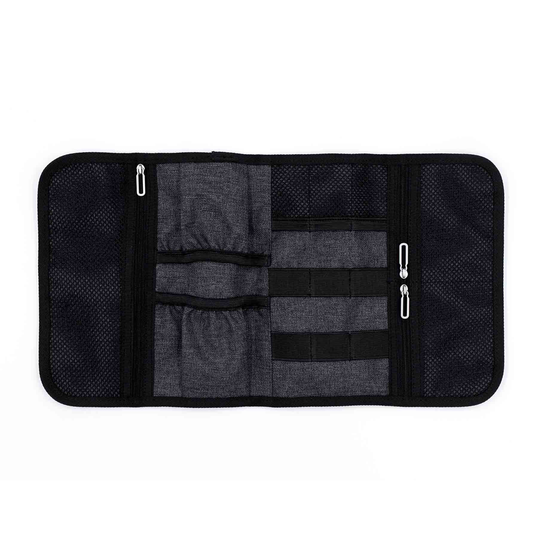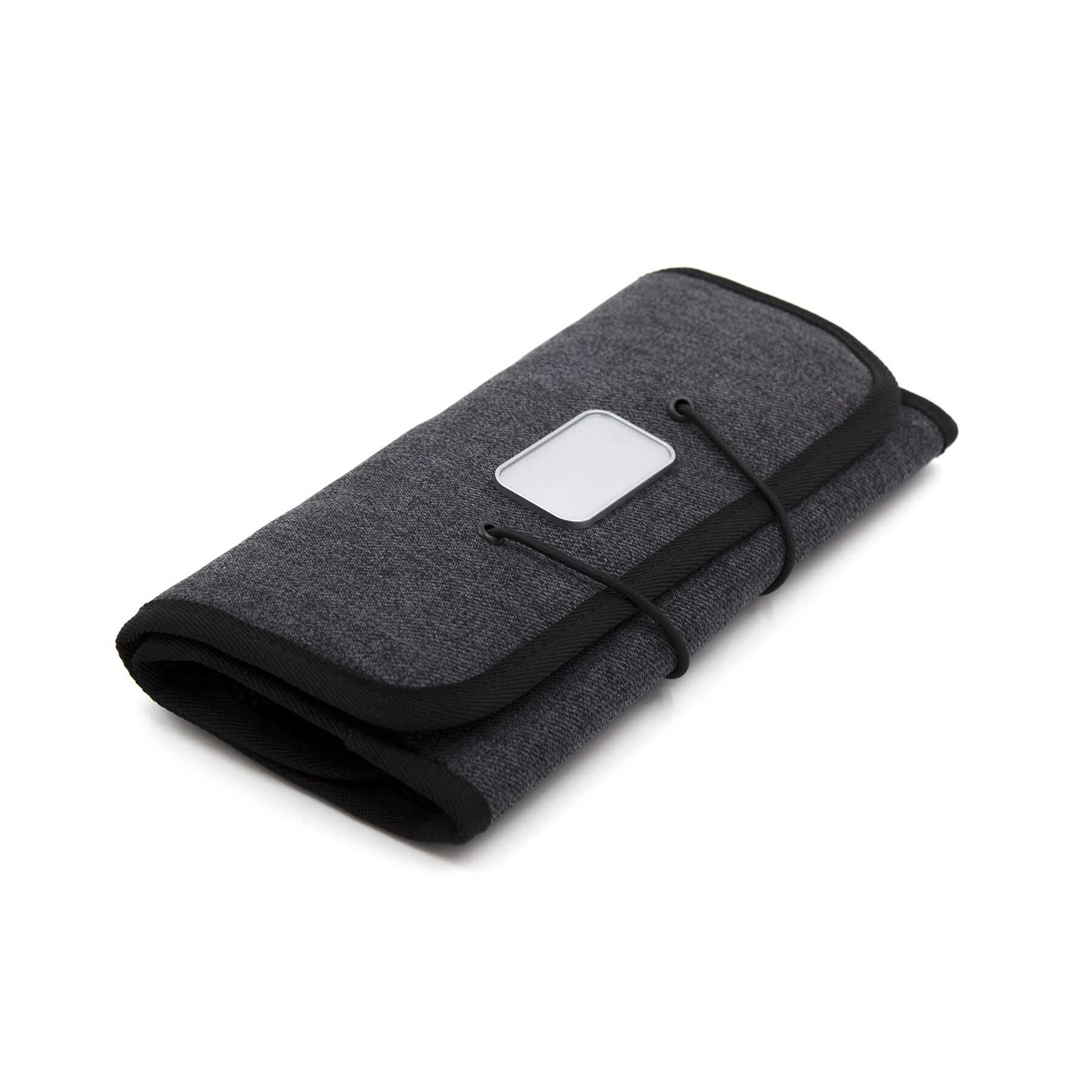 Компактный органайзер для аксессуаров с гибкой конструкцией и эластичной застёжкой. Выполнен из водо- и грязеотталкивающего полиэстера 600D премиум-класса. Внутри предусмотрены 6 эластичных петель для кабелей, ручек, кистей и инструментов, 3 сетчатых кармана для USB, SD и SIM-карт и 2 открытых отделения для зарядного устройства, адаптера или мыши. Произведён из 1,5 переработанных ♻ PET-бутылок (по 500 мл) и сертифицирован по стандарту RCS (Recycled Claim Standard).