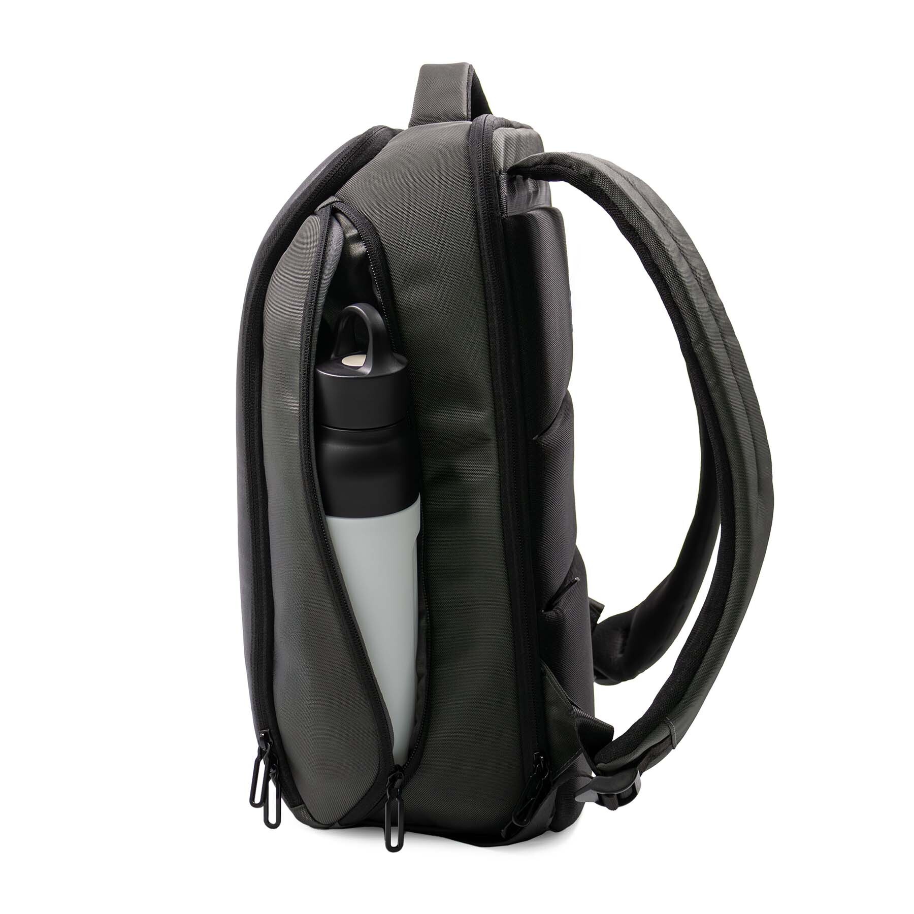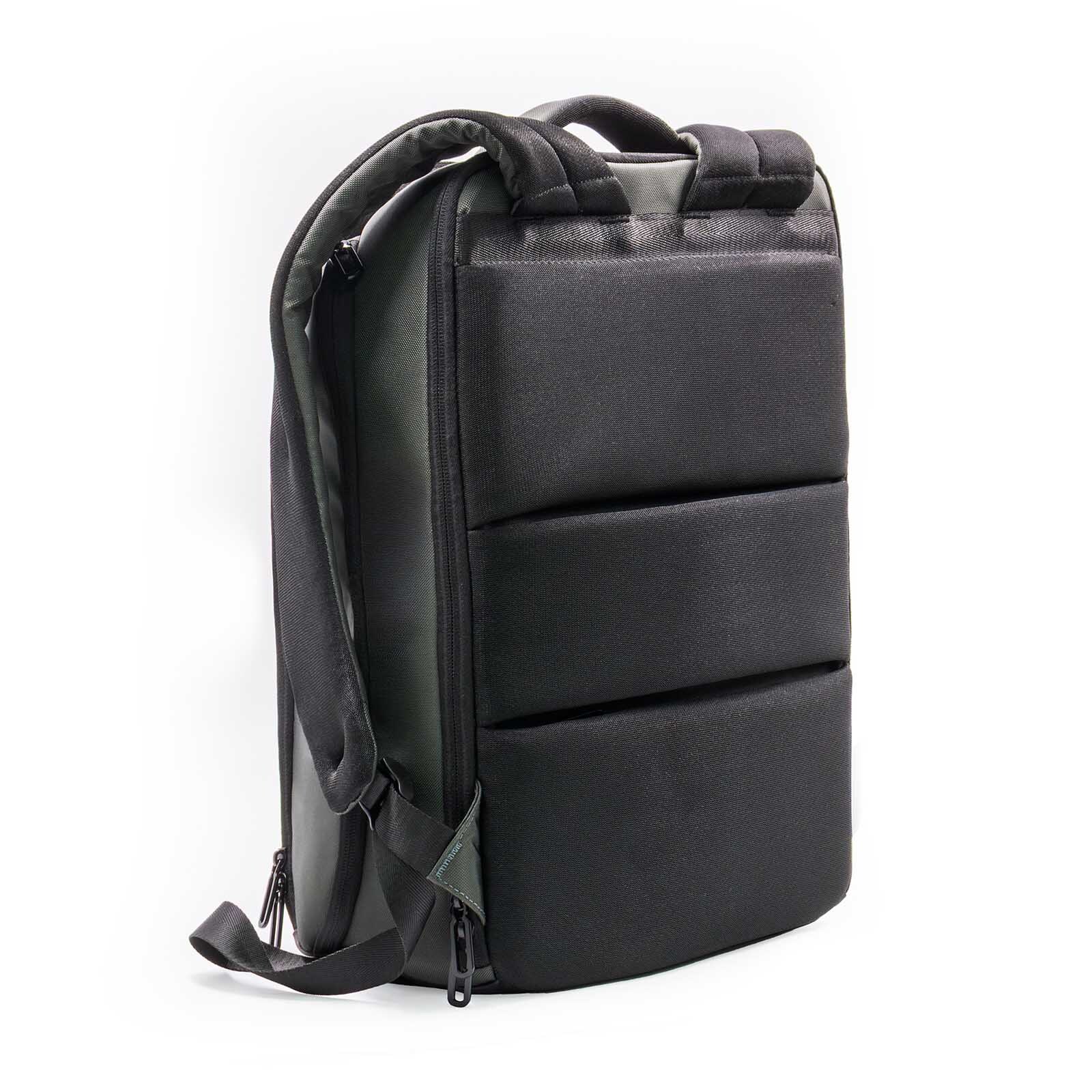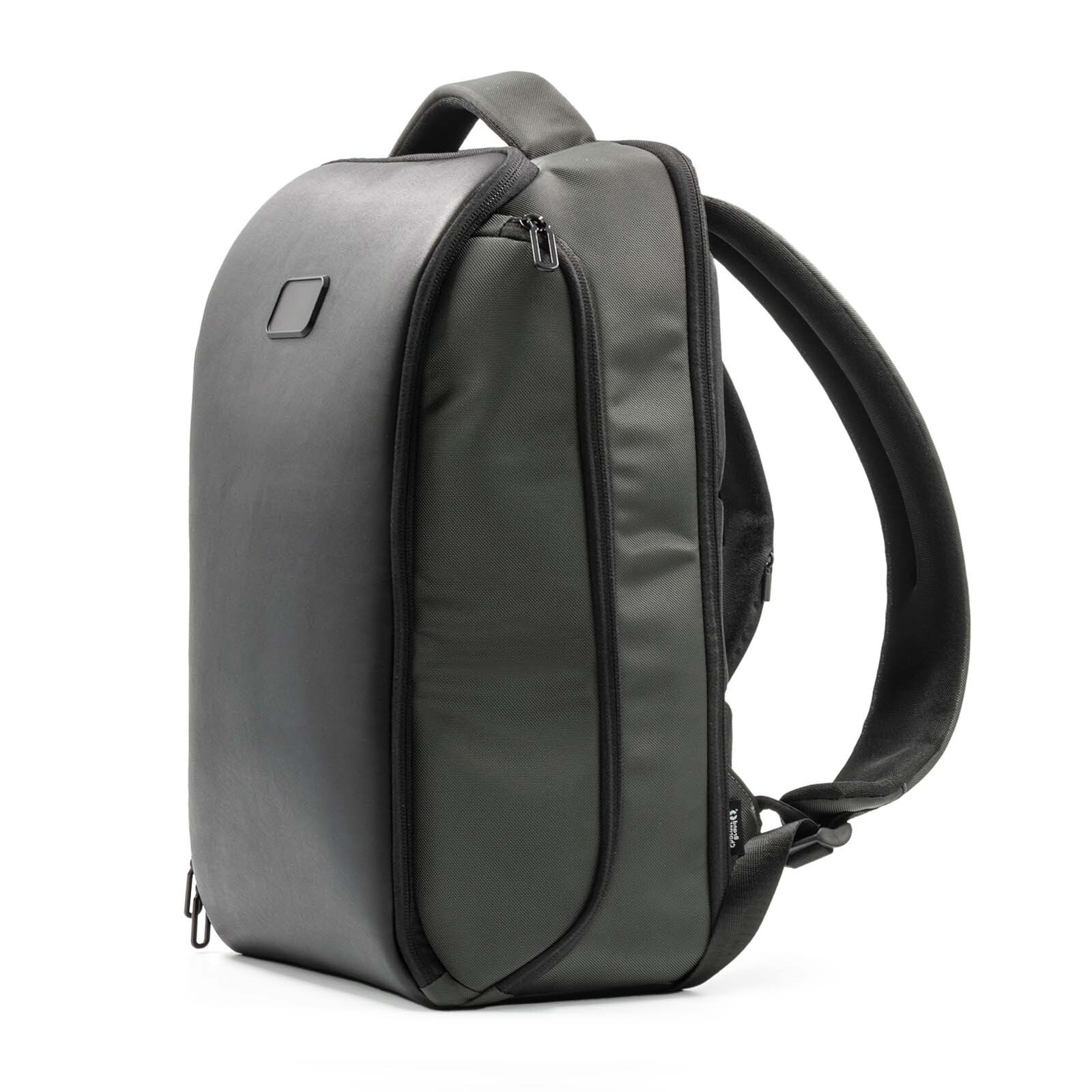 Экологичный рюкзак из баллистического полиэстера 800D с элементами из веганской кожи. Изготовлен из 7 переработанных ♻PET- бутылок (по 500 мл), сертифицирован по стандарту RCS (Recycled Claim Standard). Вместительное основное отделение с мягким отсеком защищает ноутбук до 16 диагонали, 7 функциональных отделений на молнии: отсек для очков с мягкой подкладкой, отсек для аксессуаров, карман для карт или ключей, скрытый антивор-карман на спинке, два боковых кармана для бутылки воды или зонта. Мягкие вентиляционные вставки на спинке и ремень для крепления на чемодан. Материал устойчив к влаге и загрязнениям. Объем 22 л.