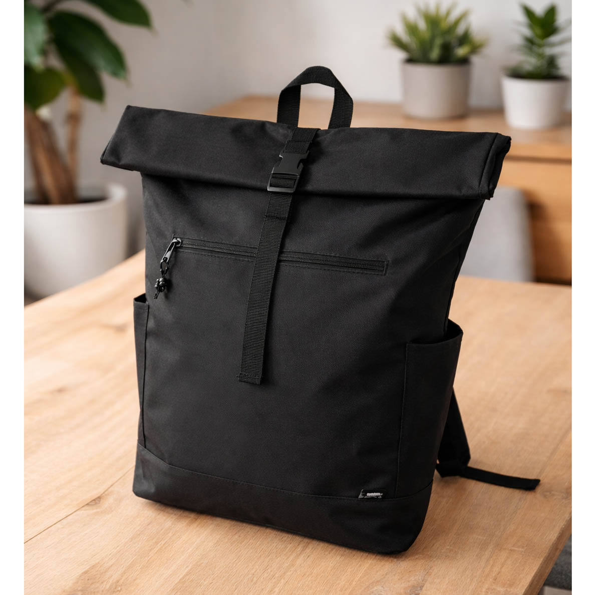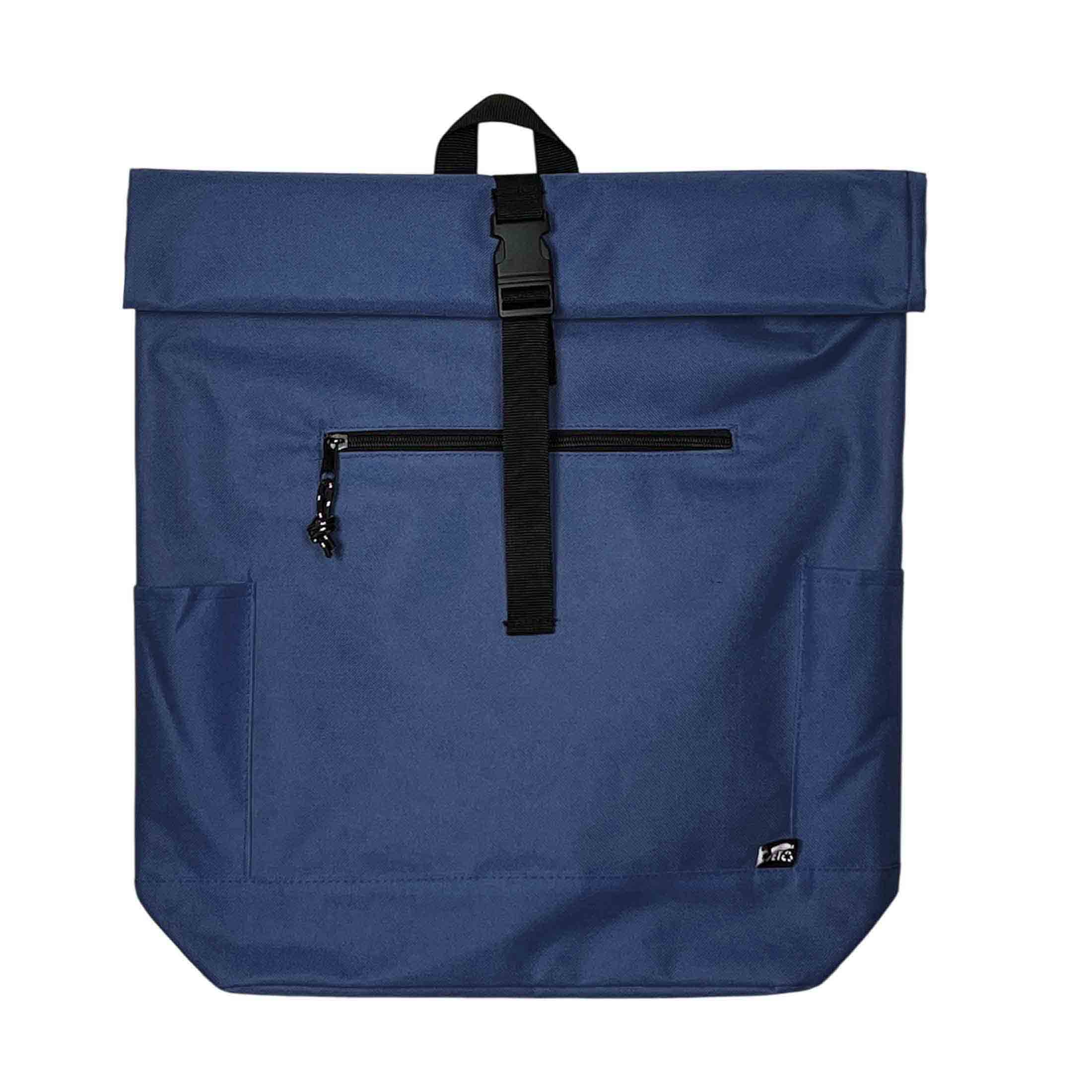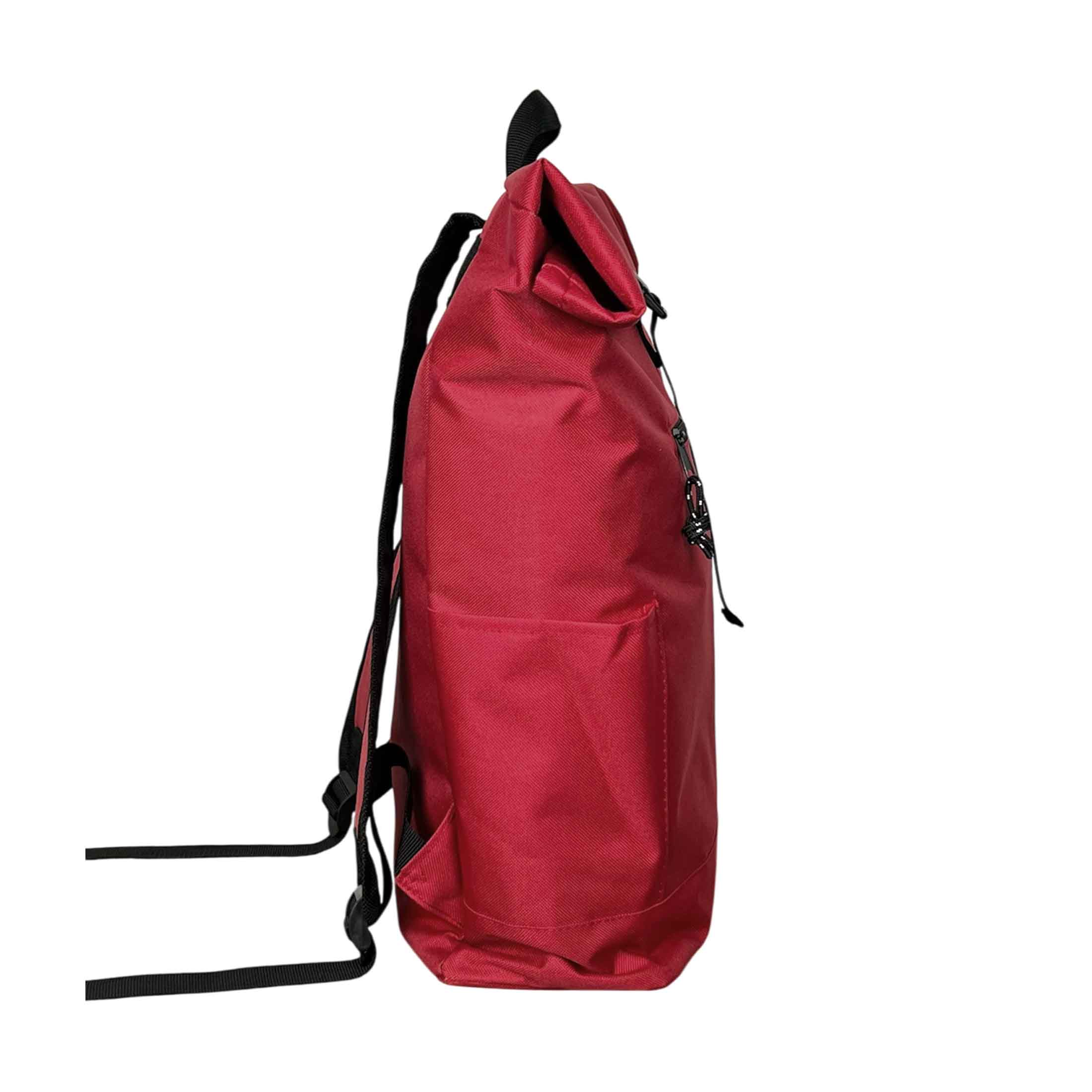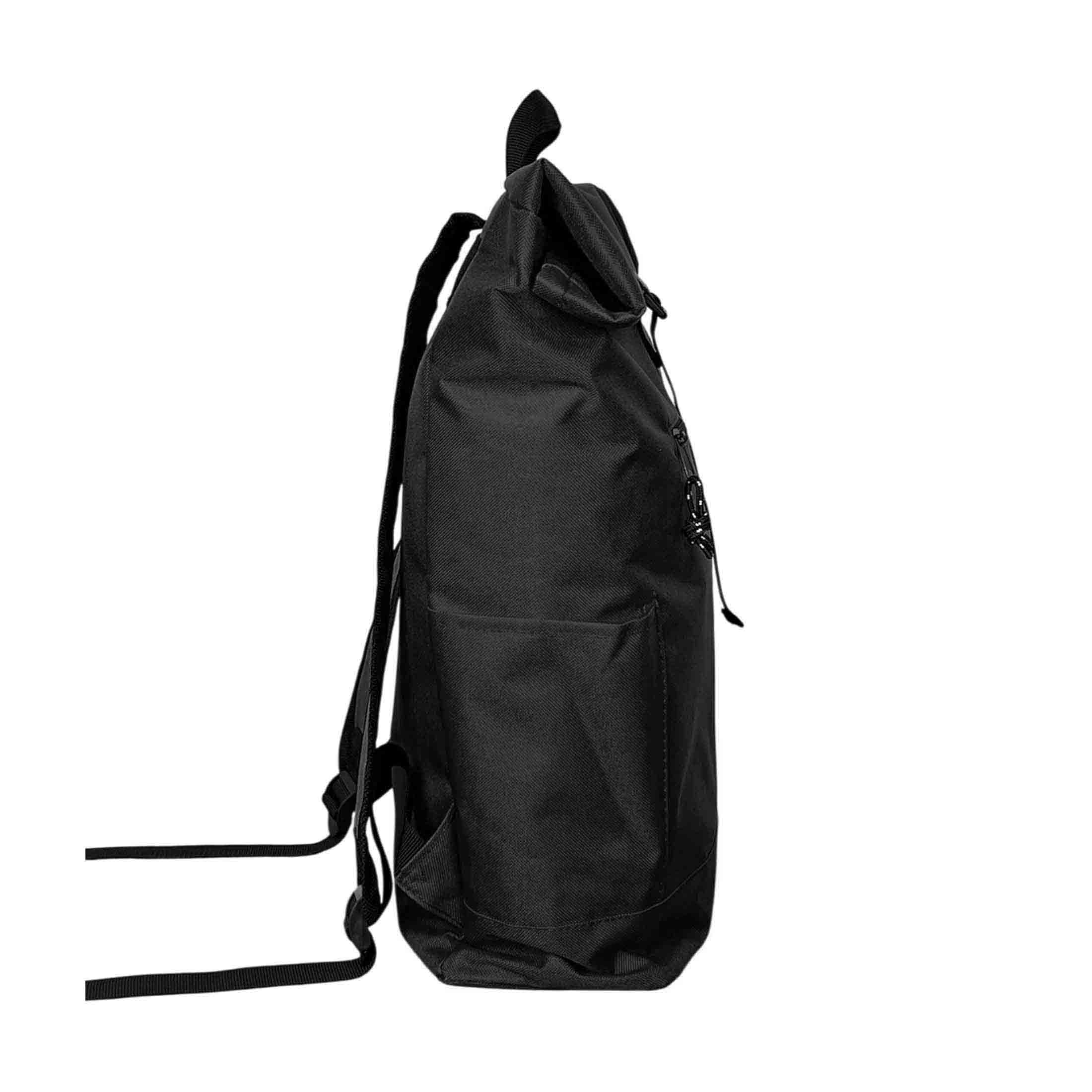Рюкзак из переработанного пластика (RPET). Система roll-top скручивания верхней части позволяет регулировать объём и обеспечивает дополнительную защиту содержимого от влаги и пыли. Имеет фиксацию основного отделения на застёжке, вместительное внутреннее пространство с мягким карманом для ноутбука или планшета, передний карман на молнии, боковые карманы для бутылки и мелочей. Выполнен из прочного износостойкого полиэстера 600D. Размер 32 x 13 x 45-60 cм