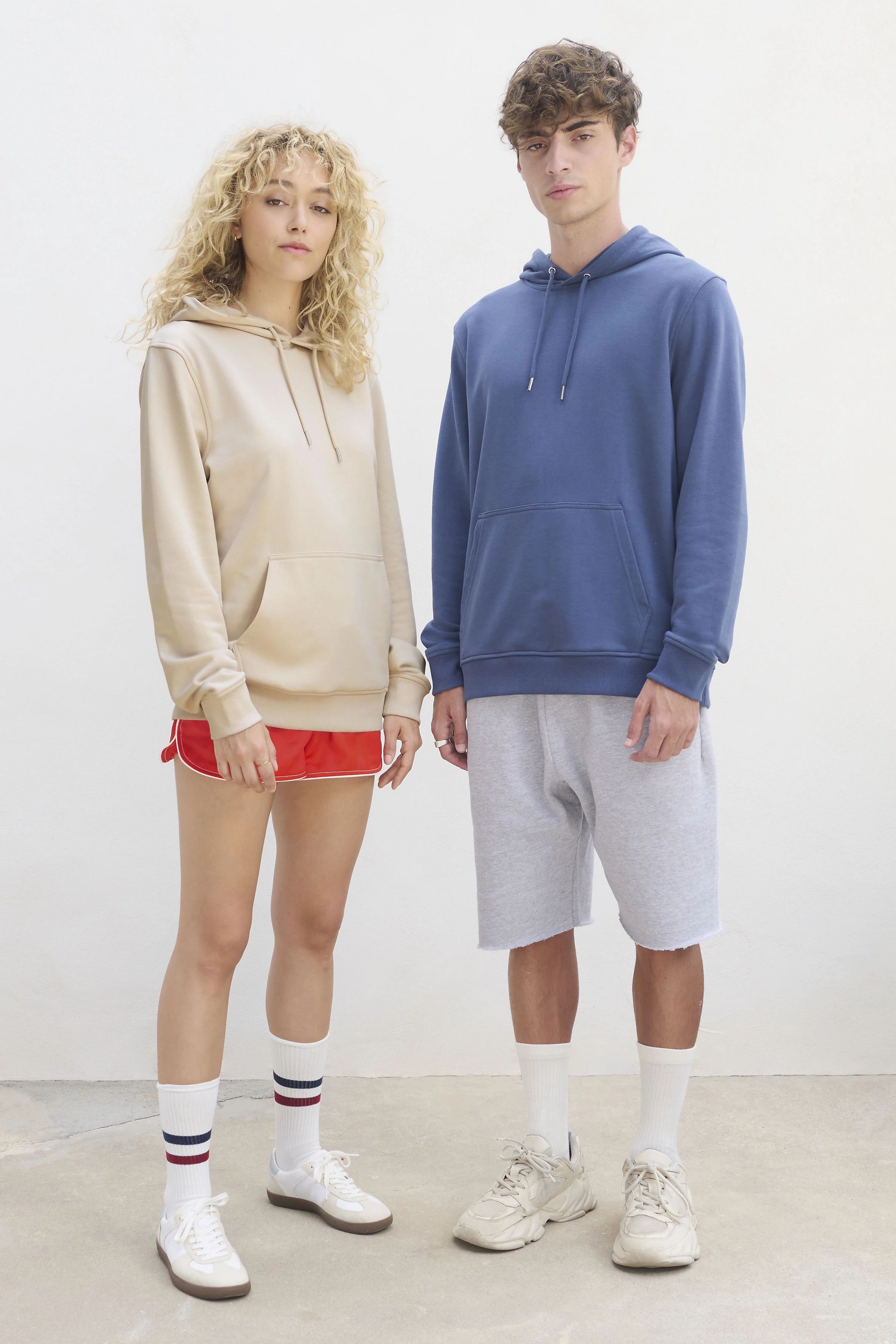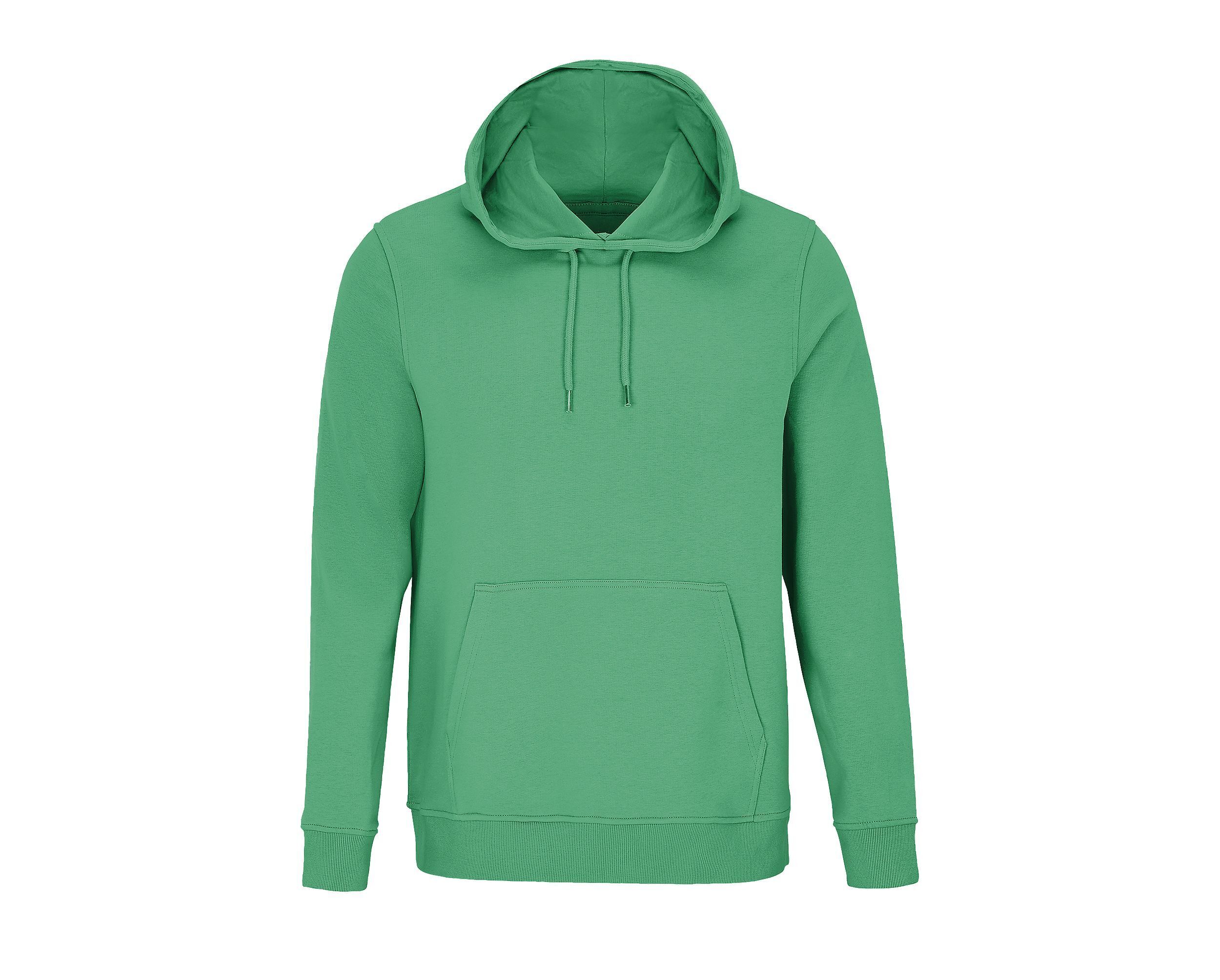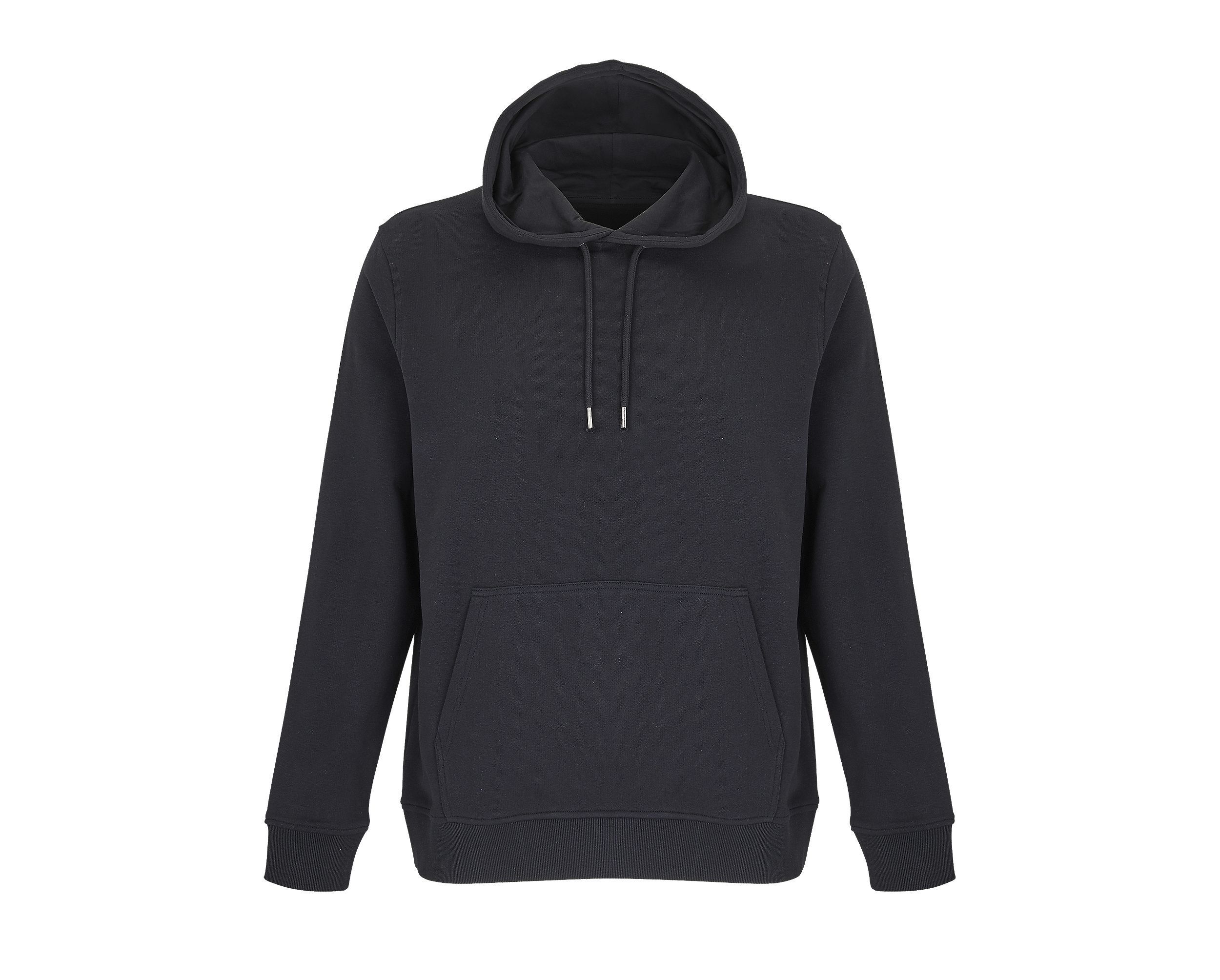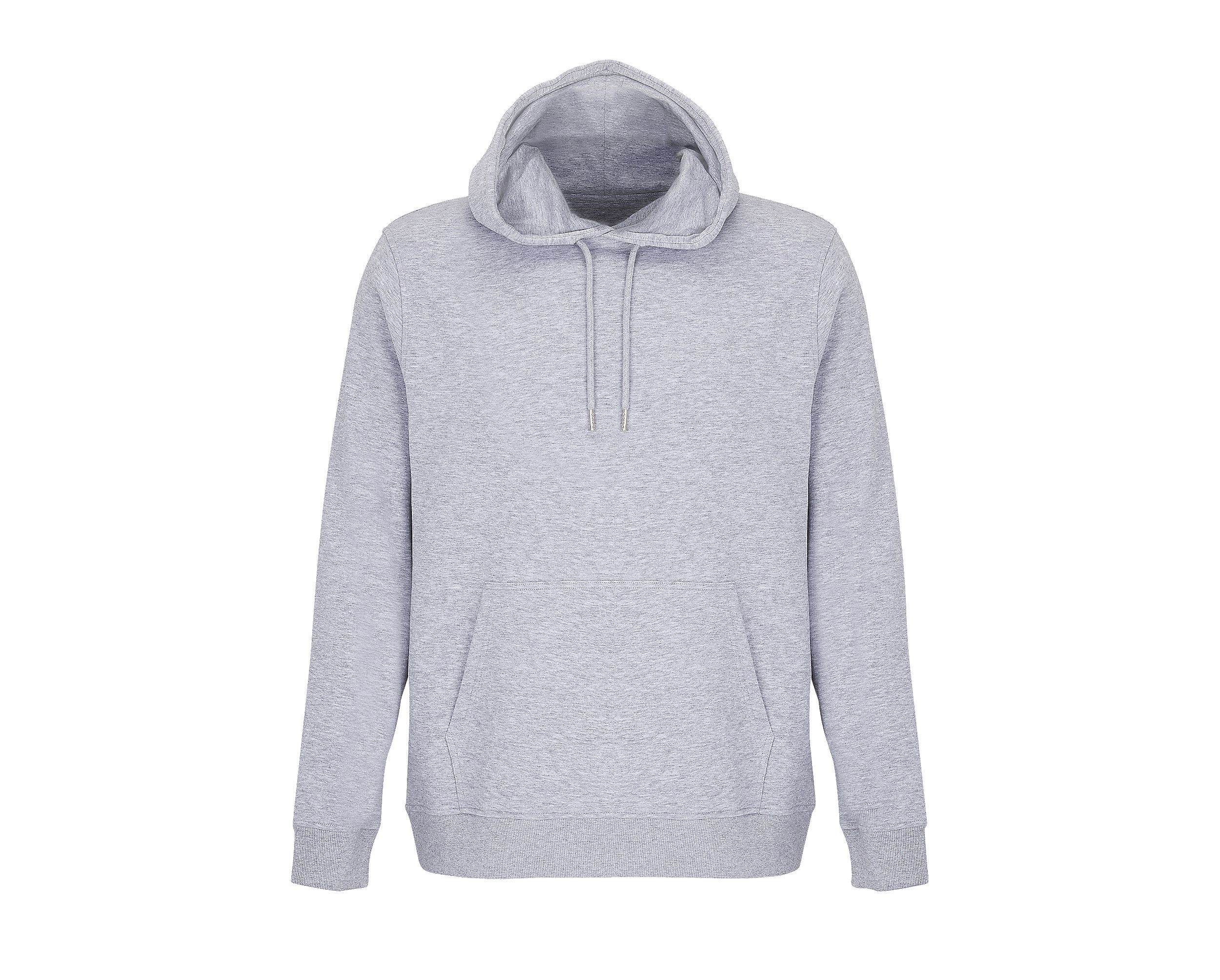 Шитый трикотаж, Втачные рукава, Манжеты и нижняя часть на трикотажной резинке 2x2, Карман-кенгуру, Полумесяц и окантовка из джерси на горловине, Капюшон на подкладке из джерси, Завязки с металлическими наконечниками и люверсами