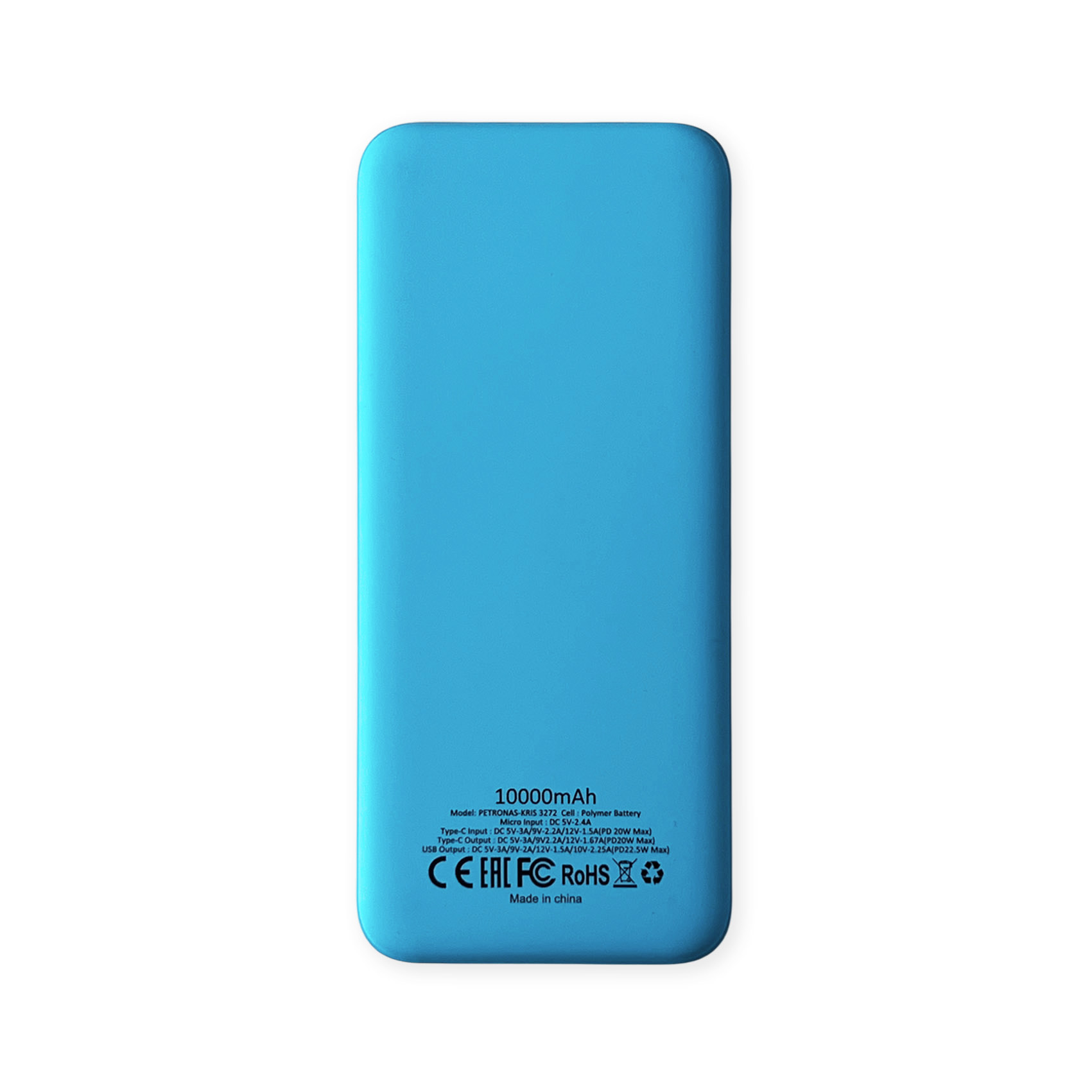 Внешний аккумулятор Kris Soft Touch ёмкостью 10 000 мА·ч оснащён входными разъёмами Type‑C и Micro‑USB, выходными разъёмами USB и Type‑C, а также цифровым индикатором уровня заряда в процентах. Устройство поддерживает технологию быстрой зарядки Adaptive Quick Charging 22,5 W (максимальная мощность — 22,5 Вт). Упаковка — лаконичная, белого цвета.